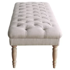 52.25″ Draper Large Decorative Bench With Button Tufting Light Brown Faux Leather – HomePop