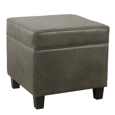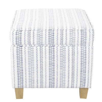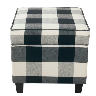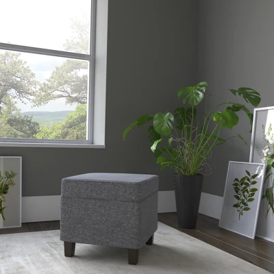 The classic square ottoman is complemented by wood legs. The square storage ottoman adds functional style to any space. Use it to store pillows or throws in a bedroom, hide toys or controllers in the family room, or conceal accessories in an entryway. Pair two ottomans together for added impact, at the base of your bed or in the living room. The lift-off lid enables easy access to storage within. No assembly required; spot clean as needed. This ottoman can support up to 250 pounds.