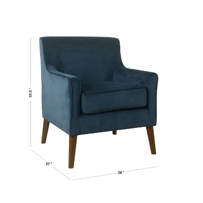 Our Davis accent chair is a striking example of mid-century design. The woven aqua blue fabric has a soft hand and is complemented by angled and tapered wood legs in a mid-tone walnut finish. The simplicity of this mid-century chair pairs well with a range of interior design styles and will add personality to any space. Use one alone in your living room, bedroom, home office or entryway; or pair two together to make a strong seating statement. Easy to assemble and maintain.