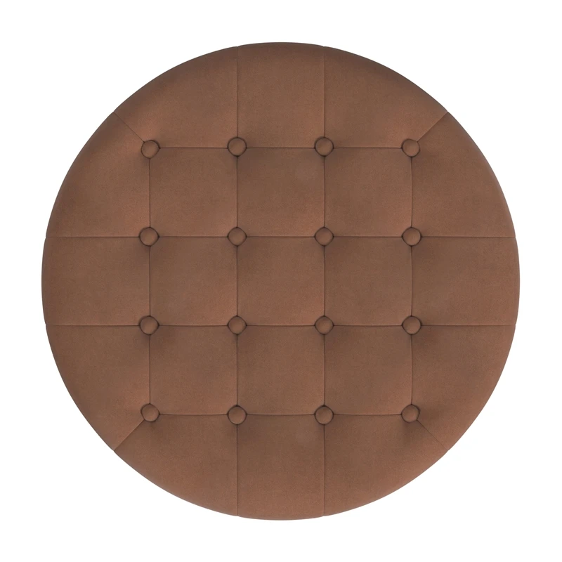 Our large round ottoman offers interest, seating and a stylish storage solution for everything from blankets to toys. With a button tufted lift off lid this modern ottoman has a relaxed, organic feel. Enjoy in your living room as a pair or in front of an accent chair for a comfortable seating arrangement. This storage ottoman with a lift off top and dark walnut finished legs is easy to assemble and maintain.