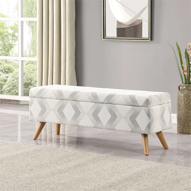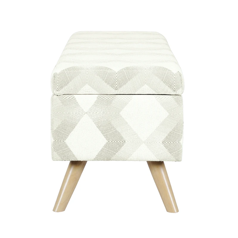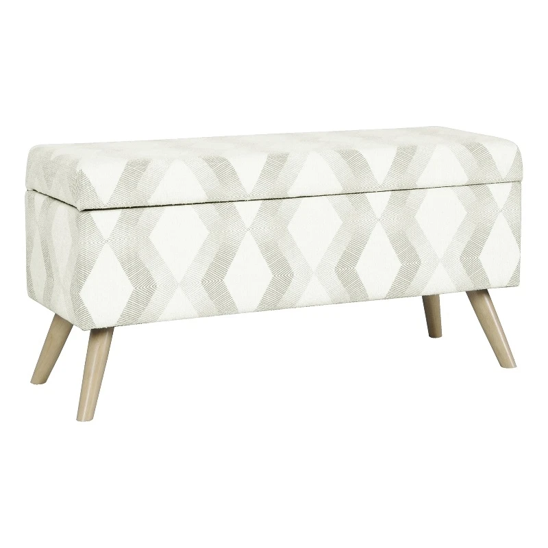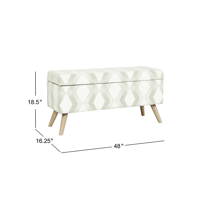 The HomePop Modern Storage Bench features clean, modern lines and stylish wood legs. This storage bench can be used as a coffee table ottoman to serve guests, or as an end of bed bench to store blankets and pillows when not in use. This multifunctional bench can provide extra seating in your dining room or living room, or hide shoes and gloves in your entryway. With a hinged lid for easy access, the Storage Bench offers functional style for any room. Easy to assemble and maintain.