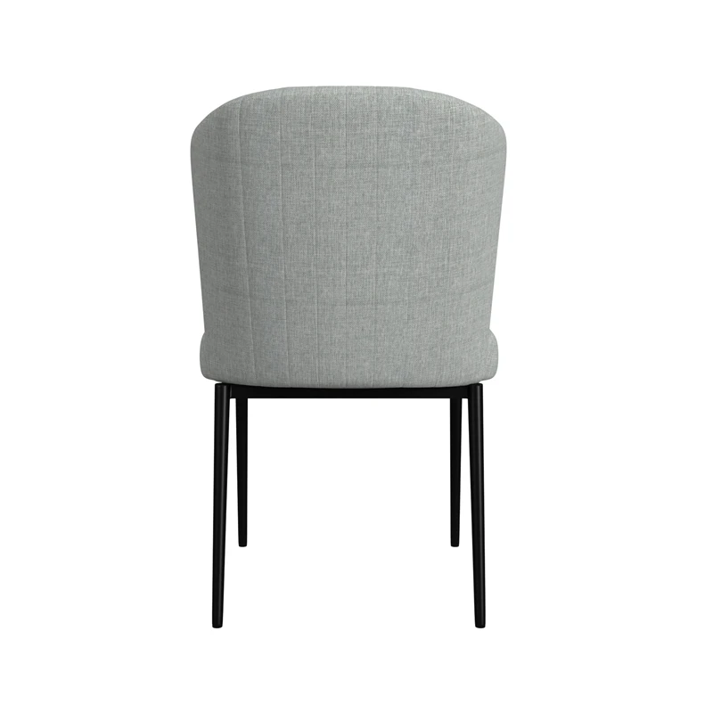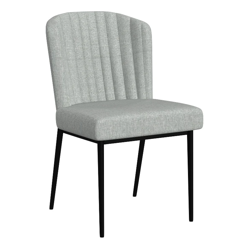 Our HomePop upholstered dining chair features channel back in durable textured solid fabric and matte-black finished metal legs. This modern style chair exudes appeal that complements andy dining table or seating area. The silhouette boasts clean lines and will fit well with your existing decor. Sold in a set of 2. Easy to assemble and maintain, spot clean only.