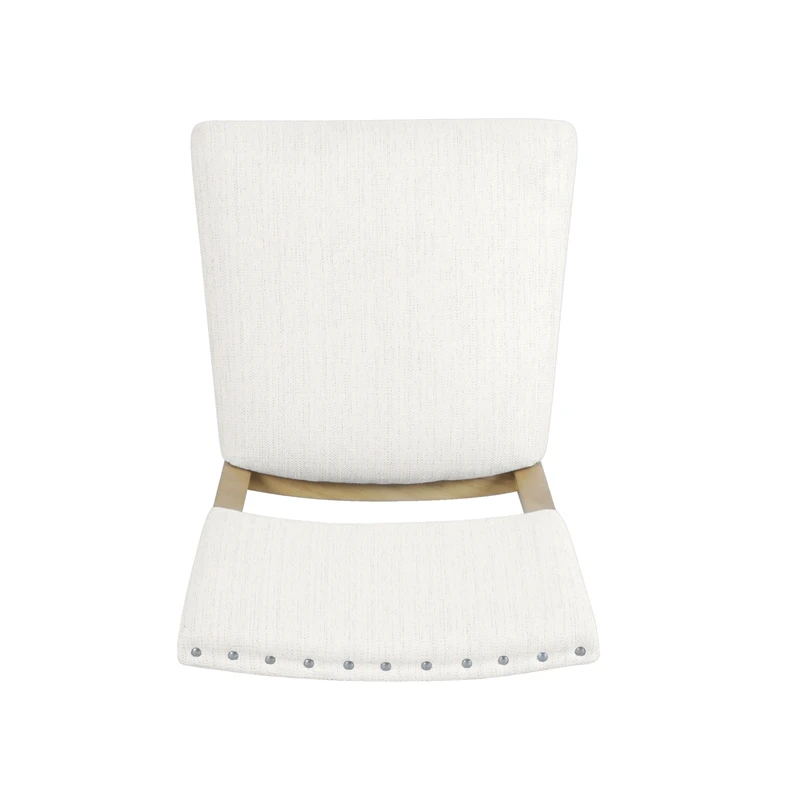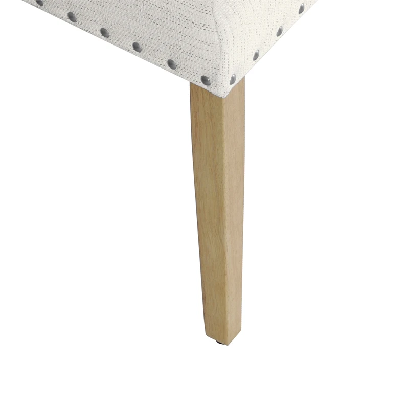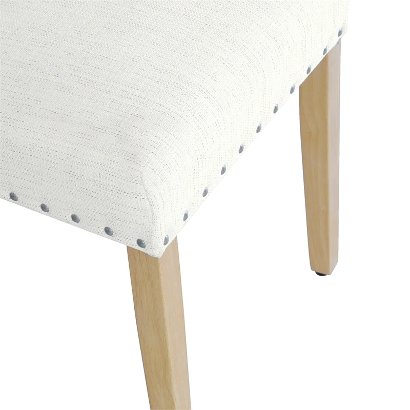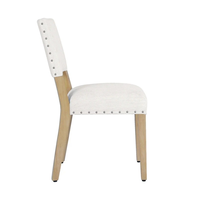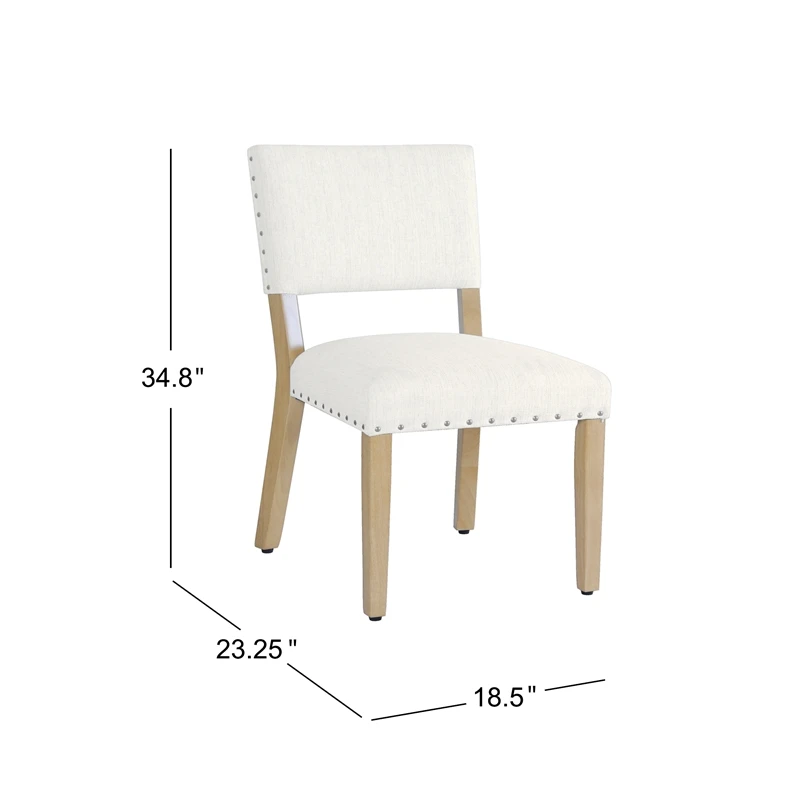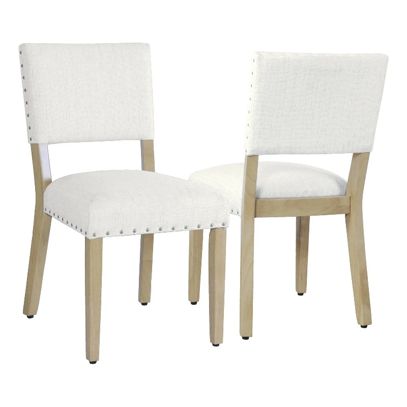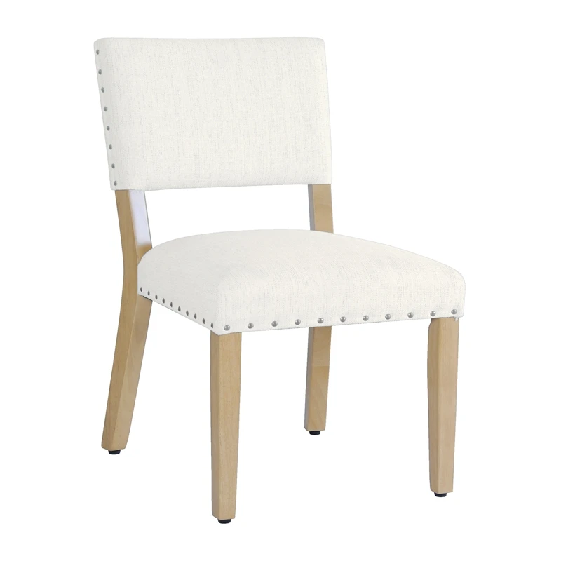 This modern dining chair provides comfortable and attractive seating for the dining room, kitchen, or wherever stylish seating is needed. Upholstered in a natural color stain-resistant woven fabric. Comfort of a fully upholstered dining chair, but keeps the room light and airy with an open back and minimal lines. The set of 2 will pair beautifully with any design style. Sold as a set of 2. Easy to assemble and maintain.