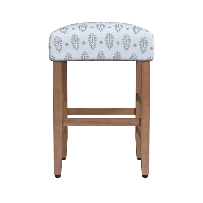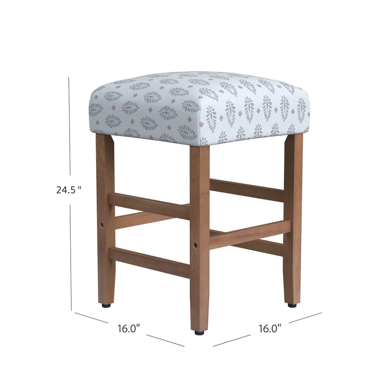 Our classic open back counter stool features a four-inch domed cushion for comfortable seating. Its classic yet masculine look easily transitions from your kitchen island to your dining room, and the open back allows it to be tucked away under a counter when not in use. Covered in a Paisley Medallion, our square stool is finished in honey oak. Easy to assemble and maintain with spot cleaning as needed.