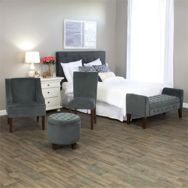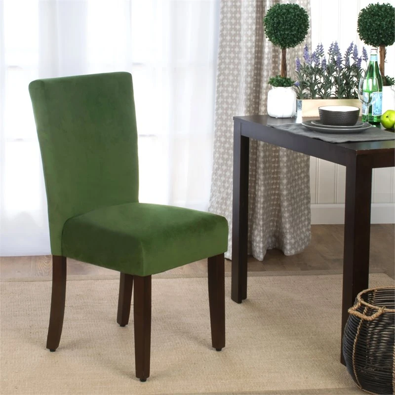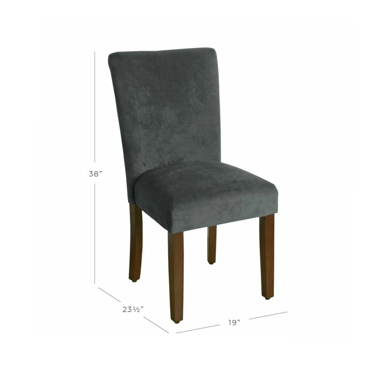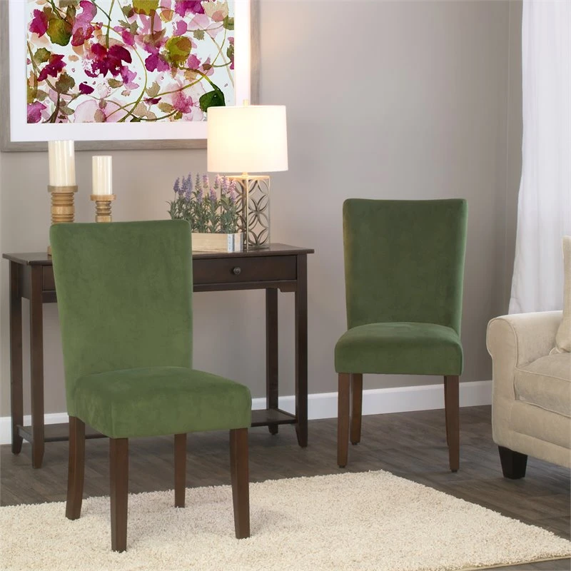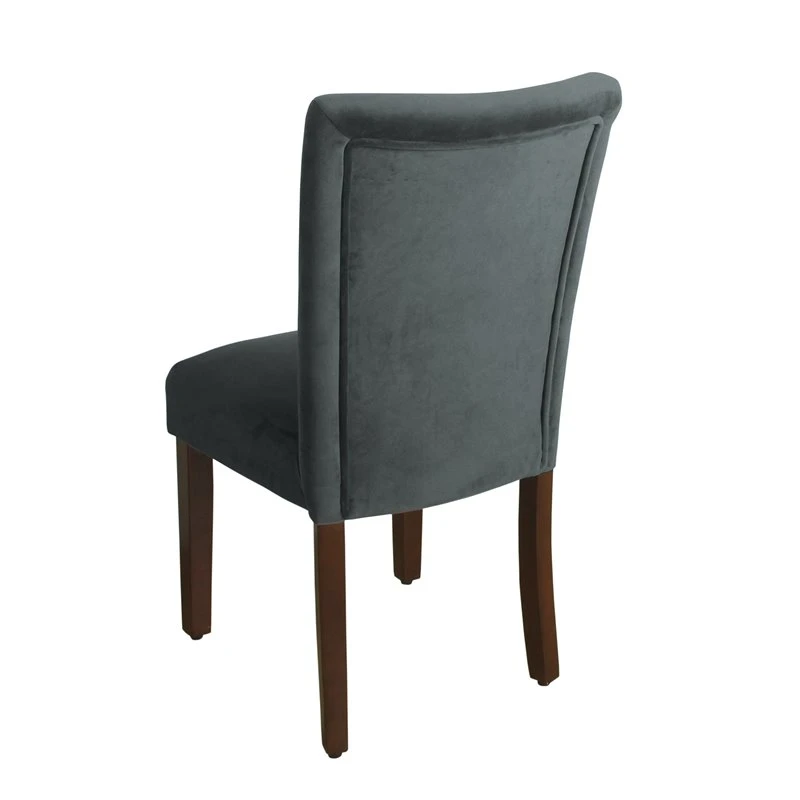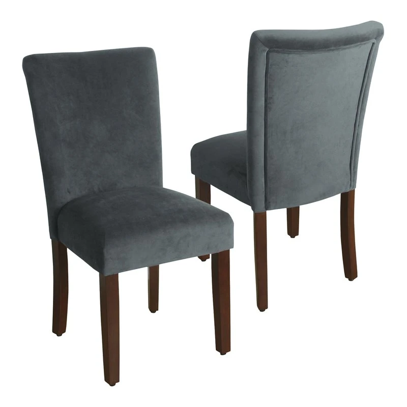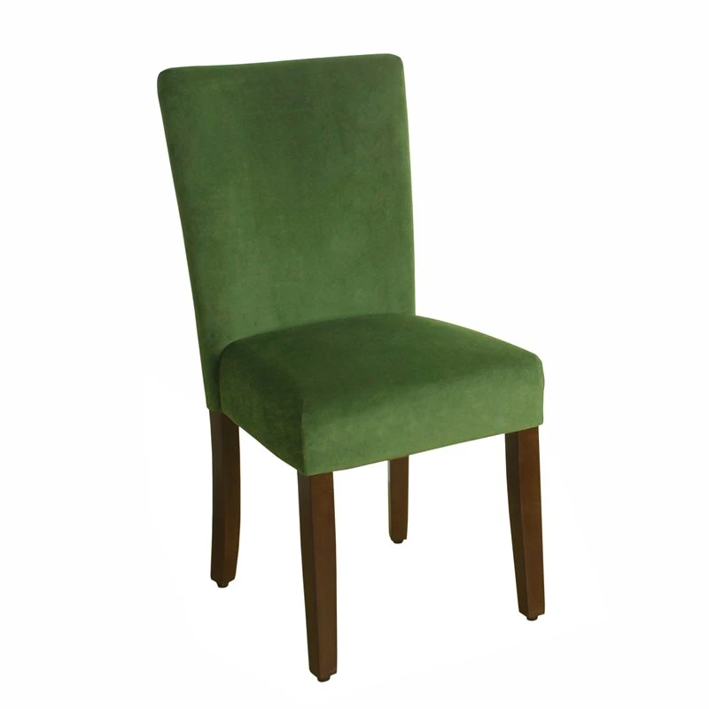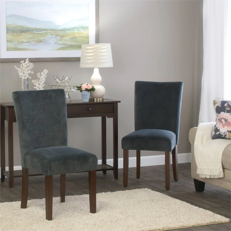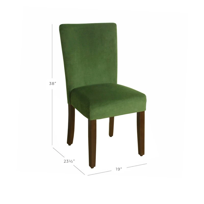 This elegant parson chair is featured in a premium velvet fabric that is both soft and durable. Buy this set of 2 chair to enhance your existing dining set with a new pop of color. Buy multiple sets of chairs to create a whole new dining ensemble. Use as a fun accent chair throughout the home. This chair has wood legs in a dark walnut finish. Available in 7 rich velvet colors. Matching HomePop velvet items available in the same color.