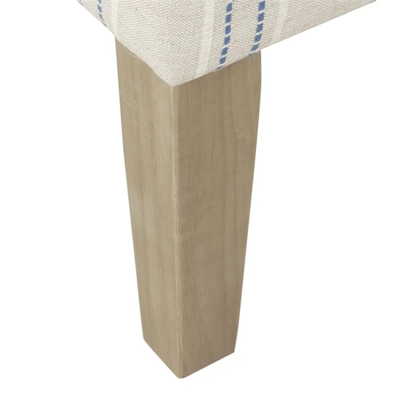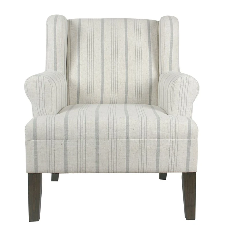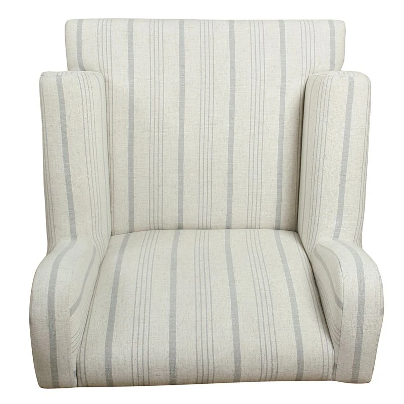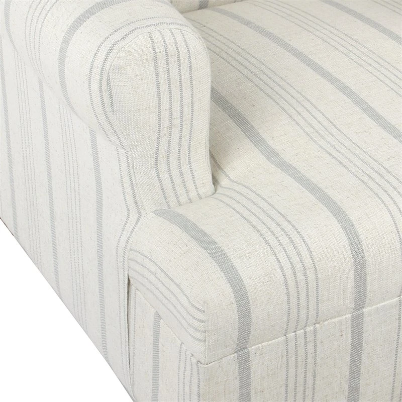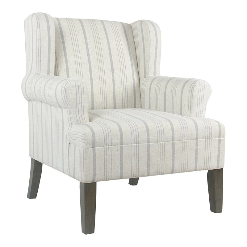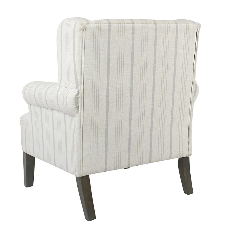 Our rolled arm Emerson chair offers comfort and style in a classic blue and white stripe with natural wood finish. Our Emerson Rolled Arm Accent Chair has a timeless appeal that complements a broad range of home decor. Use one accent chair in your living room or bedroom or pair two together for a fashionable seating solution. Easy to assemble and maintain.