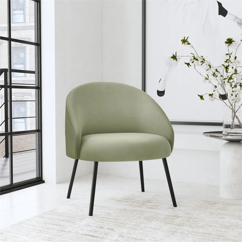 Add a touch of modern glam to any space with this comfortable velvet accent chair. Designed with sleek lines and a modern silhouette, this piece is as comfortable as it is stylish. Angled metal legs in a matte black finish and plush velvet fabric gives it an updated and stunning look. Use this quality piece as a perfect accent to your bedroom, reading nook, or any seating area. Easy to assemble and maintain.
