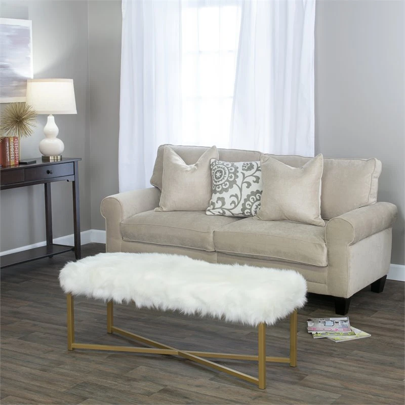 Go for glam with this soft, plush faux fur bench. Offered in black faux fur with a metal frame in a gold finish, our fashion-forward glam bench will invoke conversation and fun while providing extra seating. Place our bench in your living room or at the end of your bed. Looking for a different color or shape? Other HomePop faux fur items are available in blush, white, black and soft gray. Easy assembly; spot clean as needed.
