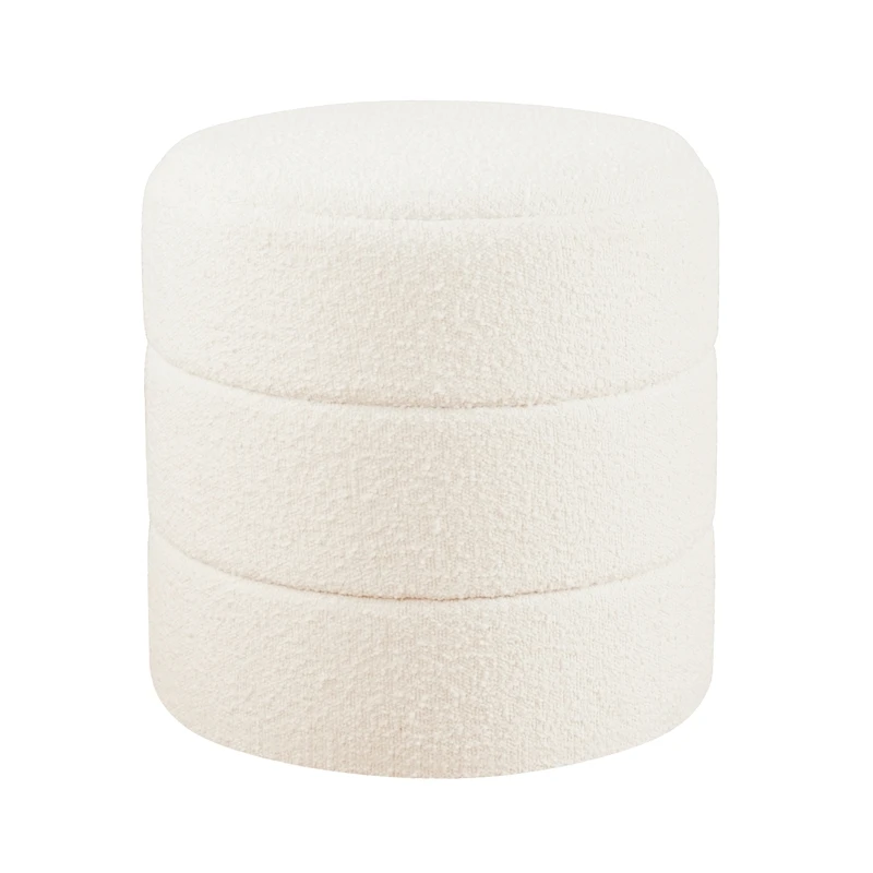 Layer in an extra surface or added seating by way of a round ottoman with dramatic channeling for great texture. Park one by an armchair or use for extra seating. Store favorite toys and beloved blankies in style with this storage ottoman. Perfect accent piece for any room in your home. No Assembly Required