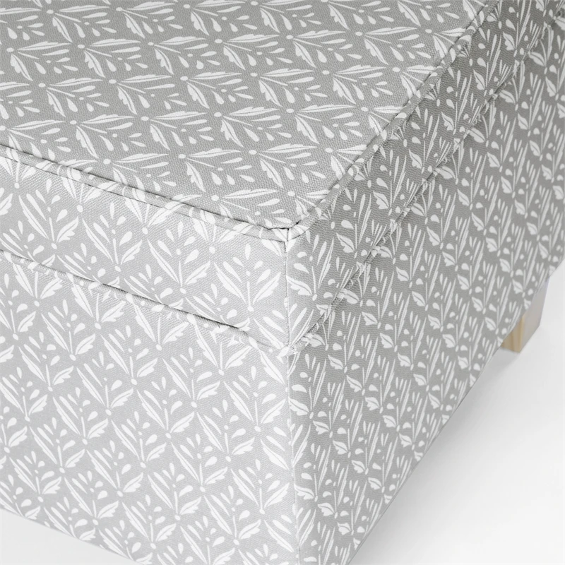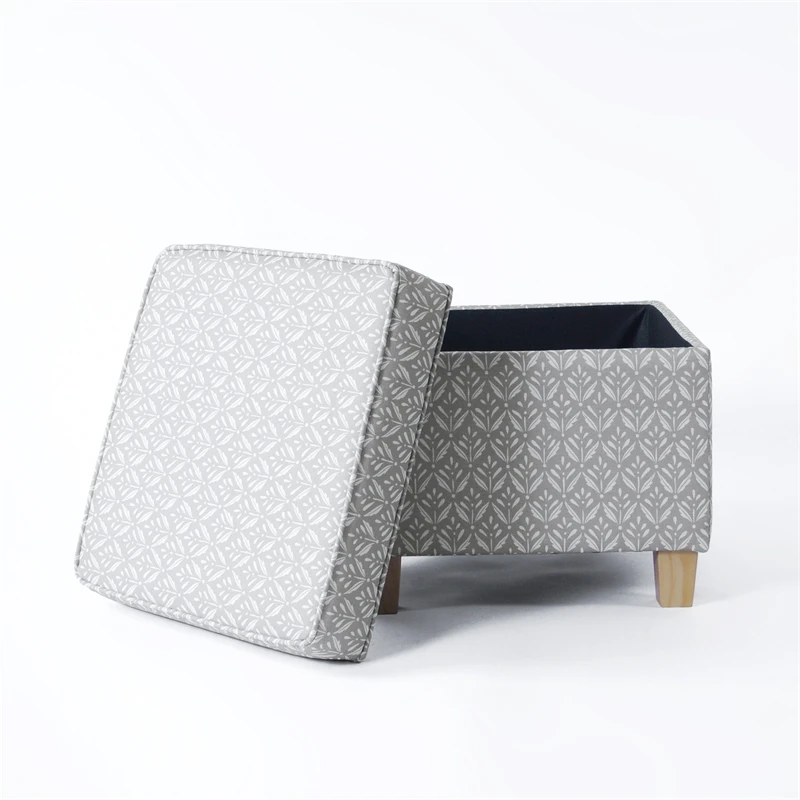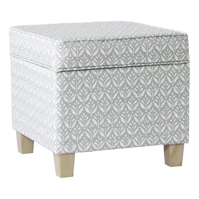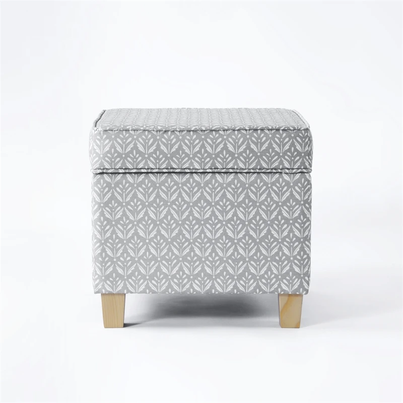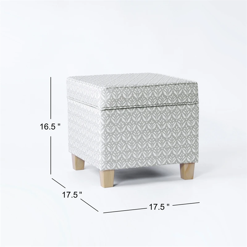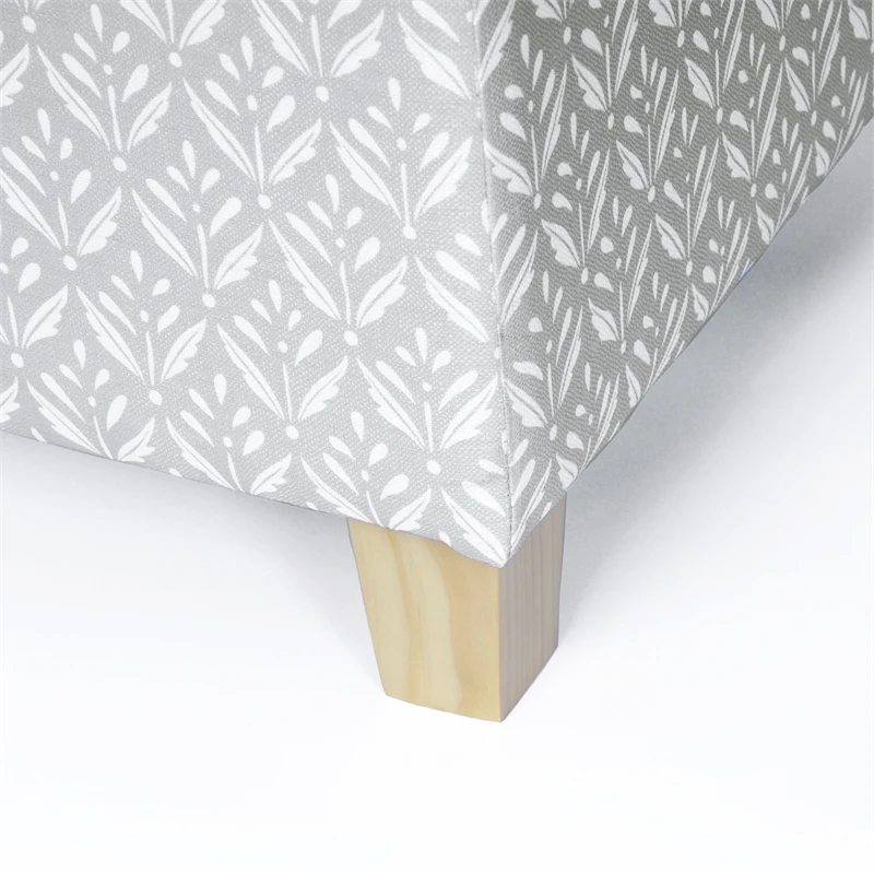 Our classic square ottoman is perfect for smaller spaces or paired two together at the end of a bed or around a living room. Featuring our gray whimsical diamond pattern print. This stylish and functional accent piece always attracts attention. With a lift off lid to easily hide things away, our square storage ottoman is complemented by wood legs in a natural finish. Easy to assemble and maintain.