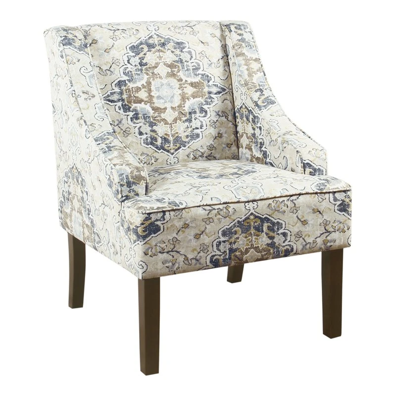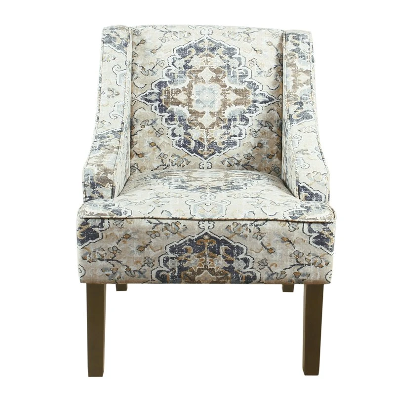 Our best-selling Classic Swoop Accent Chair in antiqued blue and cream pattern with a gray washed finish offers the perfect seating solution for any room of your home. Featuring soft gray fabric in a global-inspired pattern, our swoop chair’s subtle mix of grays and neutrals helps it work well with a range of design styles. Pair this intriguing accent chair with other neutrals or grays in the same space and allow it to be the speaking point of the room. Easy to assemble and maintain.