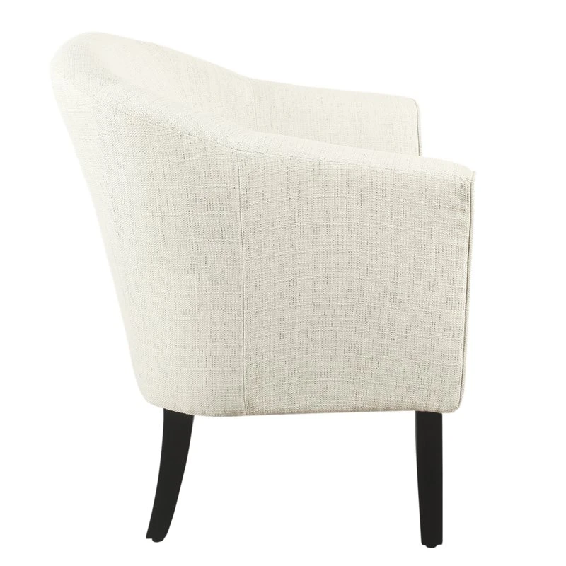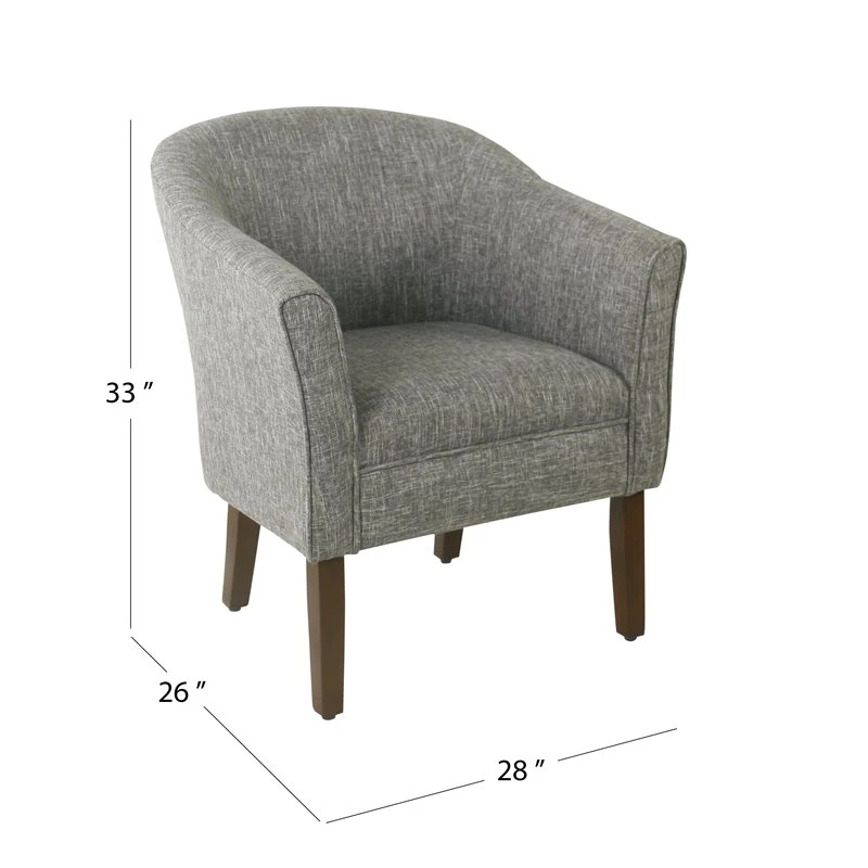 Our Modern Barrel Accent Chair adds a fun twist to any space. Available in a range of chunky solid textured fabrics in classic or bold colors, our barrel chair has wood legs with a driftwood finish. This modern accent chair is perfect for your bedroom, living room or home office, or pair two together for a cozy seating arrangement by a fireplace. This charcoal gray barrel chair has a textural look with a very soft hand. Easy to assemble and maintain.